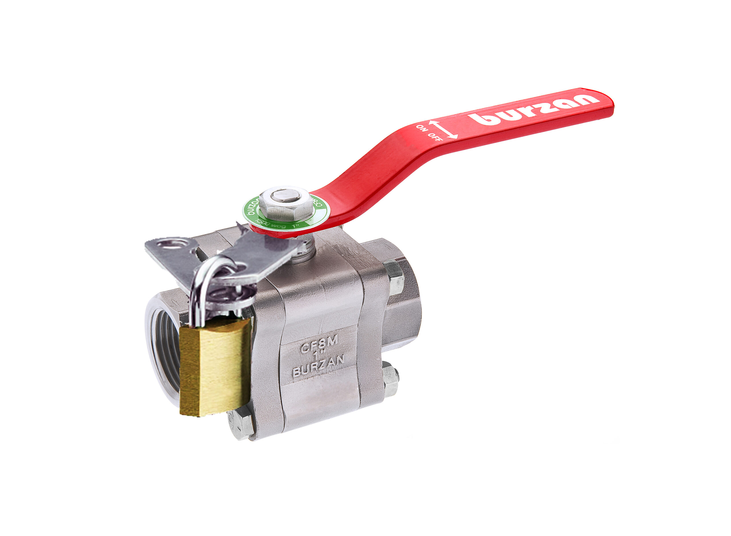 El dispositivo de bloqueo mantiene inoperativa la manija de la válvula en la posición abierta o cerrada. Permite agregar un candado de 6 u 8mm para evitar el uso indebido o accidental de la válvula.